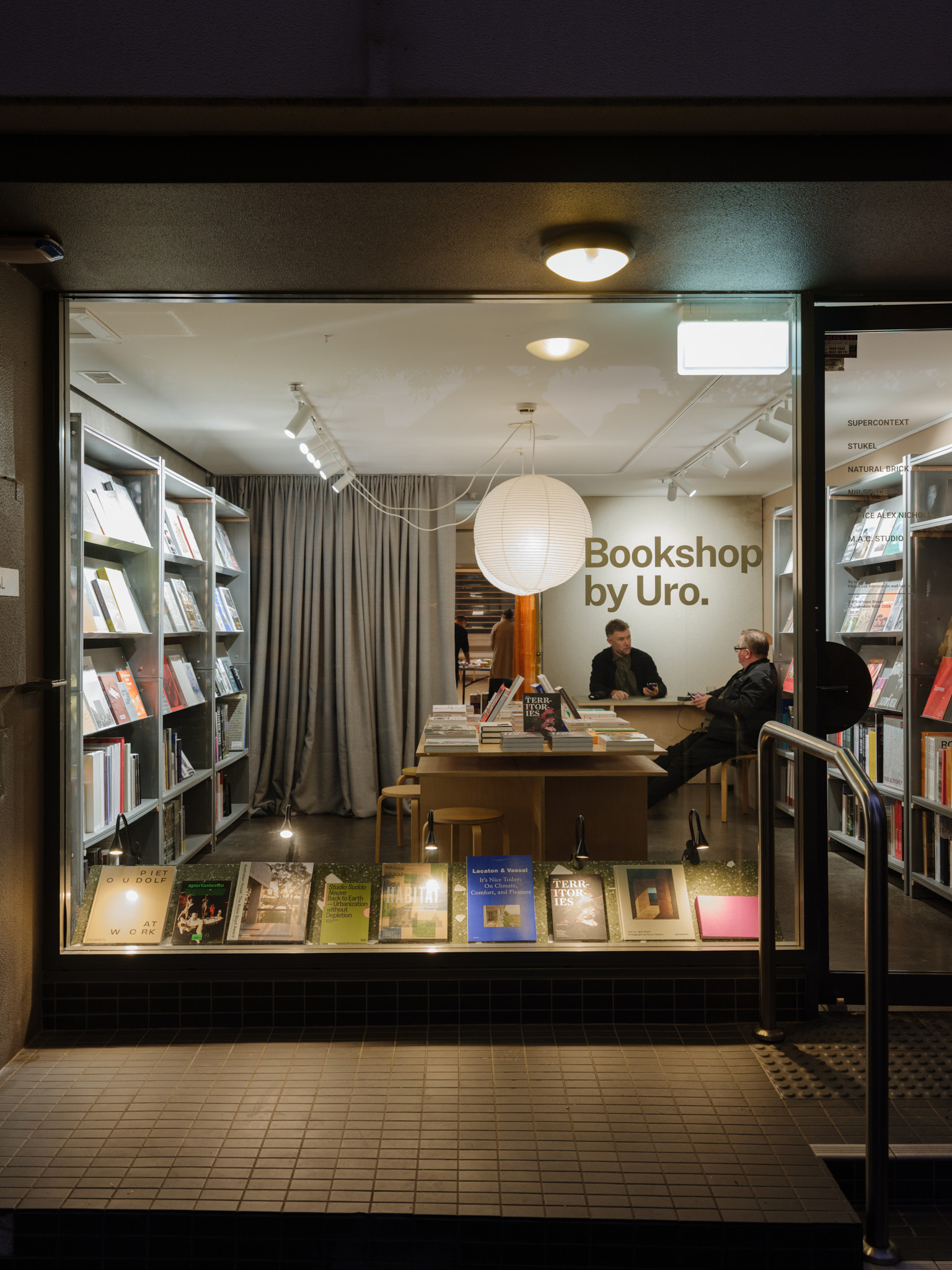 Situated in Chippendale in Sydney's city fringe alongside Supercontext's offices, Bookstore by Uro represents the Sydney store of Australian publishing house Uro Publications (https://www.uropublications.com/). The project was developed as a collaboration between several architecture, design, fabrication and manufacturing studios largely from within the network of studios co-located with Bookshop by Uro, Sydney. Contributions from Second Edition, Copy Nature Office, Natural Brick and Stukel Architecture converted the ground floor of a narrow, 4-story 'terrace'-like office building into the bookstore and event space.