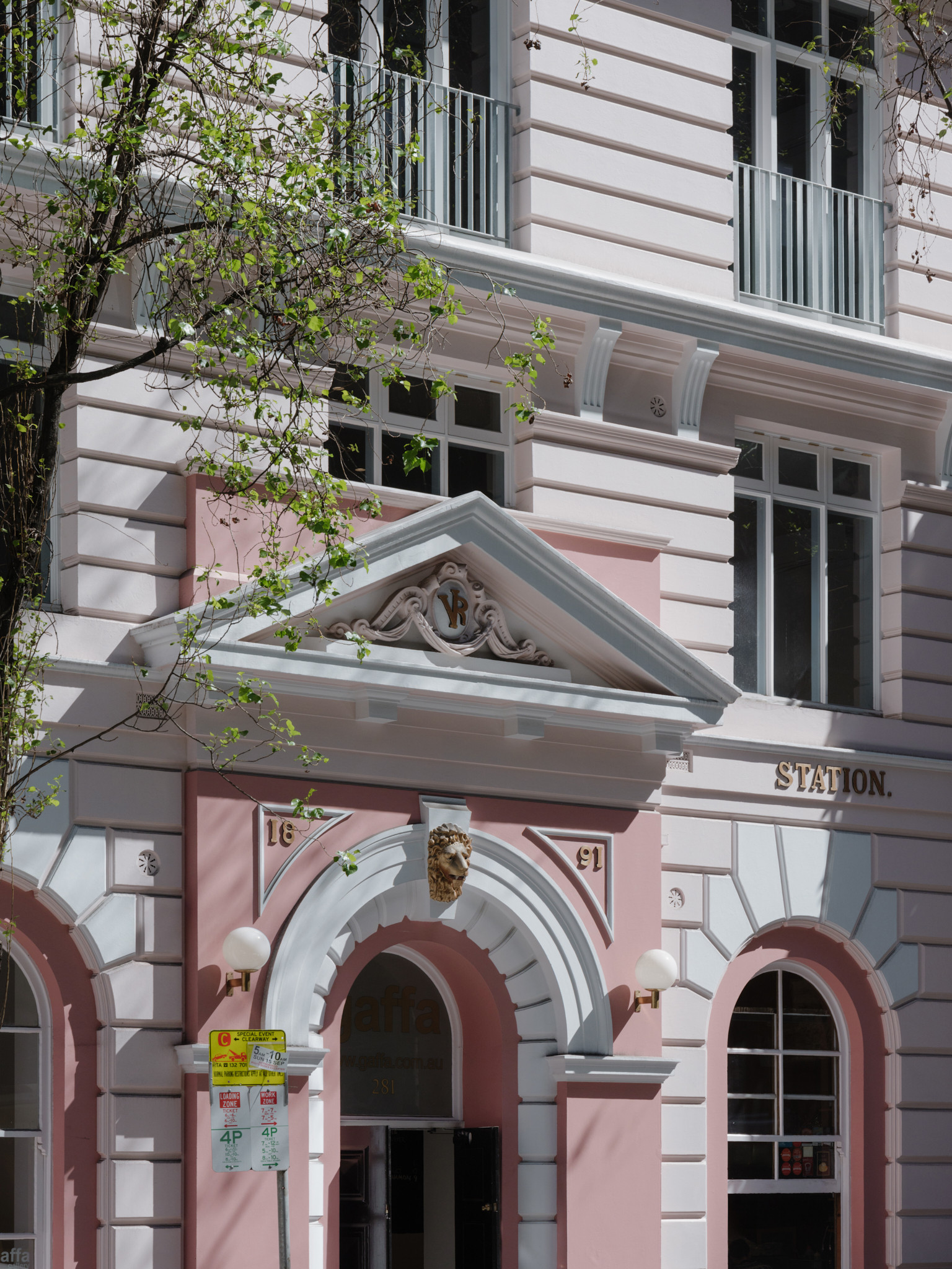 281 Clarence St is a state-heritage listed former police station building, designed by then colonial architect James Barnet in the late 1800s. Originally 1 storey, it was subsequently added to by Barnet, and then further again by then government architect Richard Wells in the 1920s. It served as a police station until the mid-1980s when it was sold and converted into a private residence and offices. Since the mid 2000s, 281 Clarence has been the home of the Gaffa Creative Precinct, including maker spaces and an art gallery.